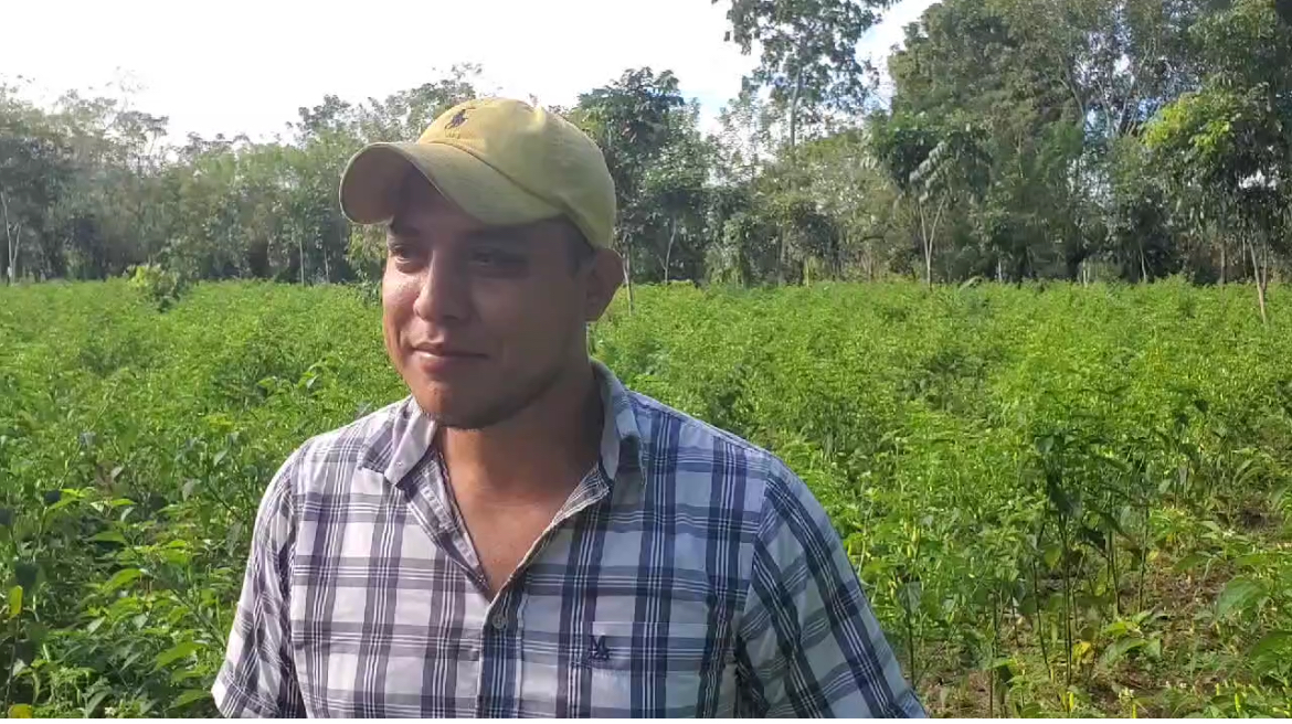 Estarkin Munguía es un joven productor que está probando con una manzana y media de chile Tabasco en la zona de Orica .