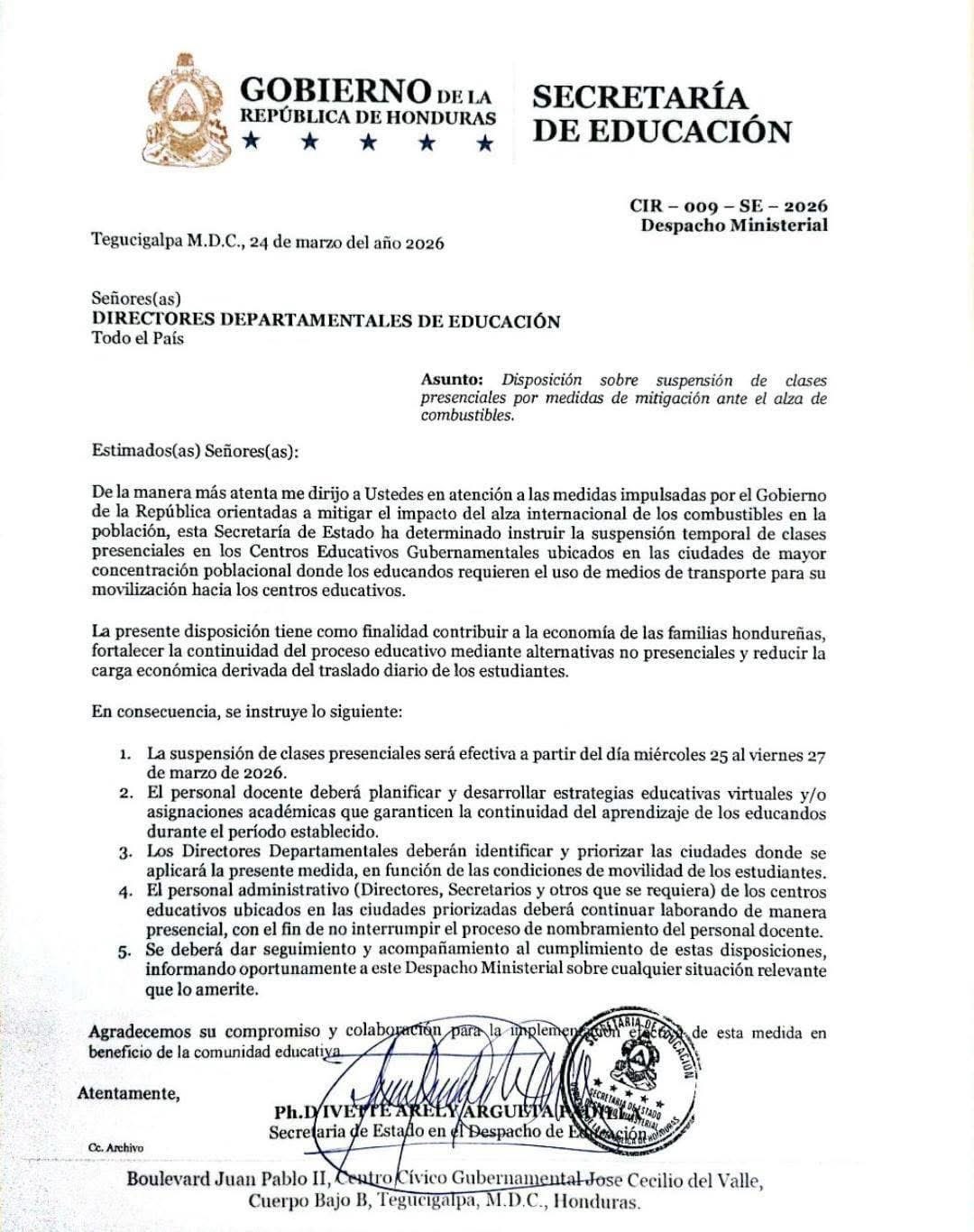 La Secretaría de Educación de Honduras informó que, como medida de mitigación ante el alza en los combustibles, se implementarán clases virtuales en los centros educativos públicos a nivel nacional.