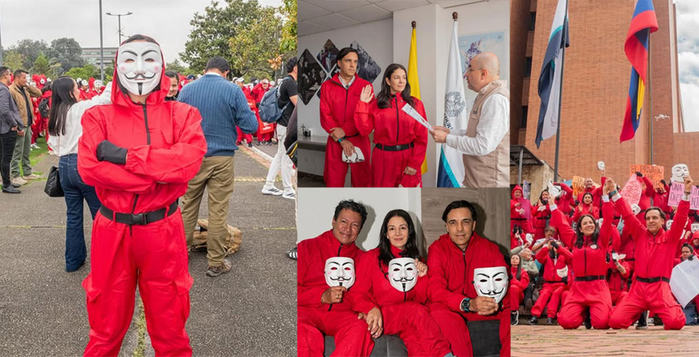 Sondra Macollins Garvin, abogada colombiana, sorprendió al inscribir su candidatura presidencial vistiendo el traje rojo y la máscara de Salvador Dalí, emulando a los personajes de la serie ‘La casa de papel’ para representar a los ciudadanos anónimos.