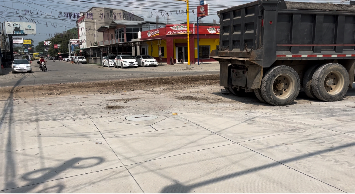 Kenny Amaya encargado de la obra expresó que el pavimento tiene la capacidad para soportar el peso normal del transporte de carga,ya que por esta calle transitan las rastras para el plante de una empresa de bebidas.