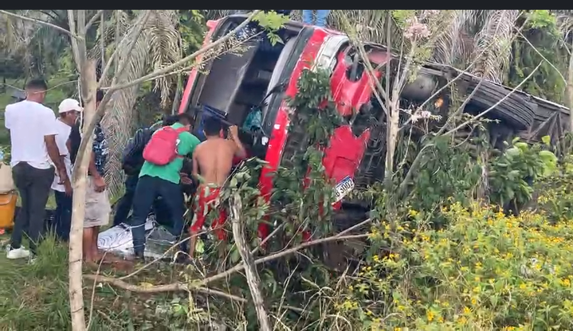 Olanchito,Yoro –  Un bus  del transporte Interurbano de la ruta de esta ciudad a La Ceiba se dio vuelta en la comunidad de Armenia, dejando como saldo varias personas lesionadas.