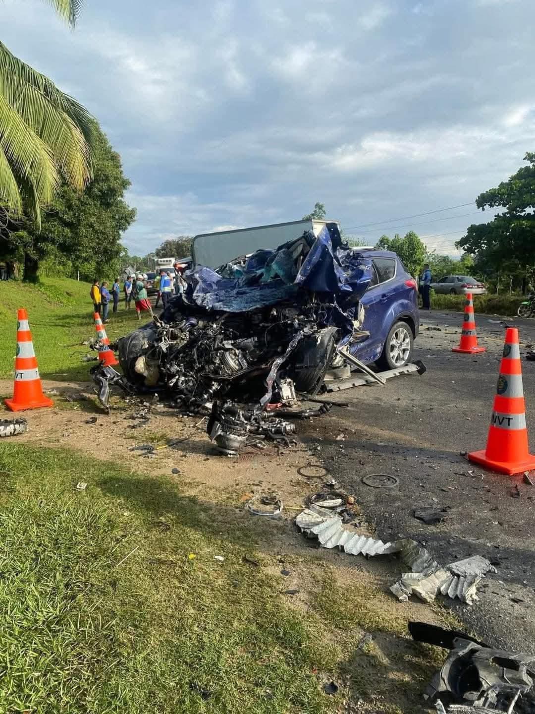 El accidente se produjo entre una camioneta color azul y un camión en la carretera entre Tela y La Ceiba .