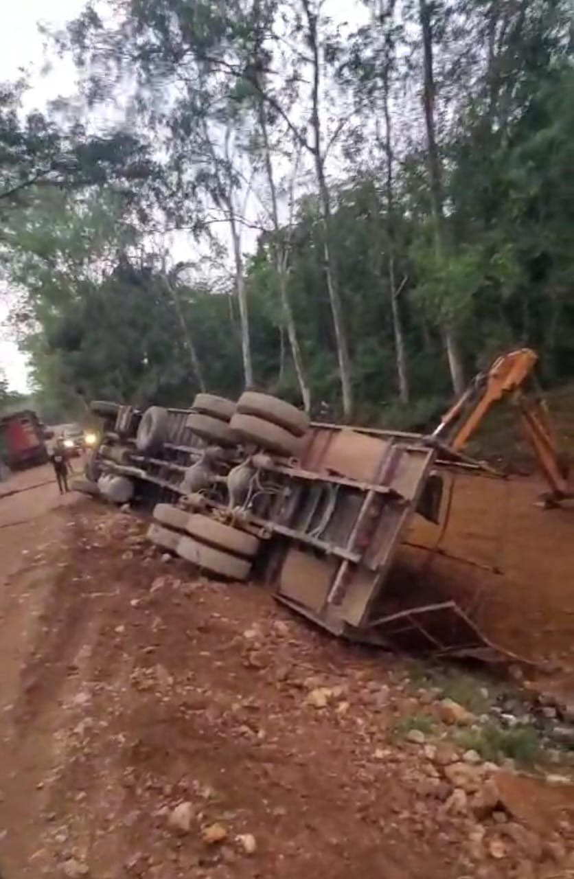 Limón ,Colón- No se ha entregado y el puente recién construido y ya causa accidentes.,una rastra cargada con fruta de palma se dio vuelta al tratar de ingresar al recien construido puente, a la altura de Plan de Flores en Limon .