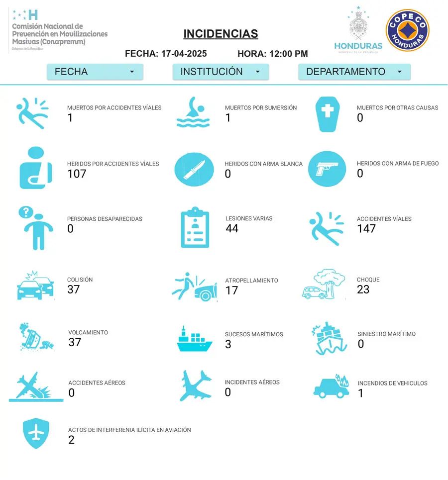 A pesar del elevado número de percances, Conapremm solo reporta una víctima mortal por accidente vial desde el inicio del feriado de Semana Santa. El fallecido fue identificado como Kevin Kegan Moore Bustillo, quien perdió la vida en el departamento de Atlántida.