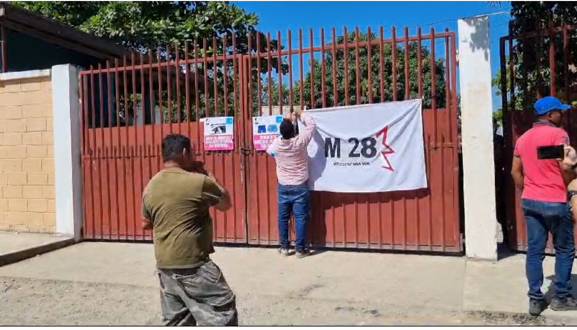 Tocoa,Colón – Simpatizantes del movimiento M28 del Partido Libre protestan frente al centro de acopio donde se encuentran resguardadas las maletas electorales en el departamento de Colón, esto denunciando un supuesto boicot por parte de otras corrientes de este mismo partido.