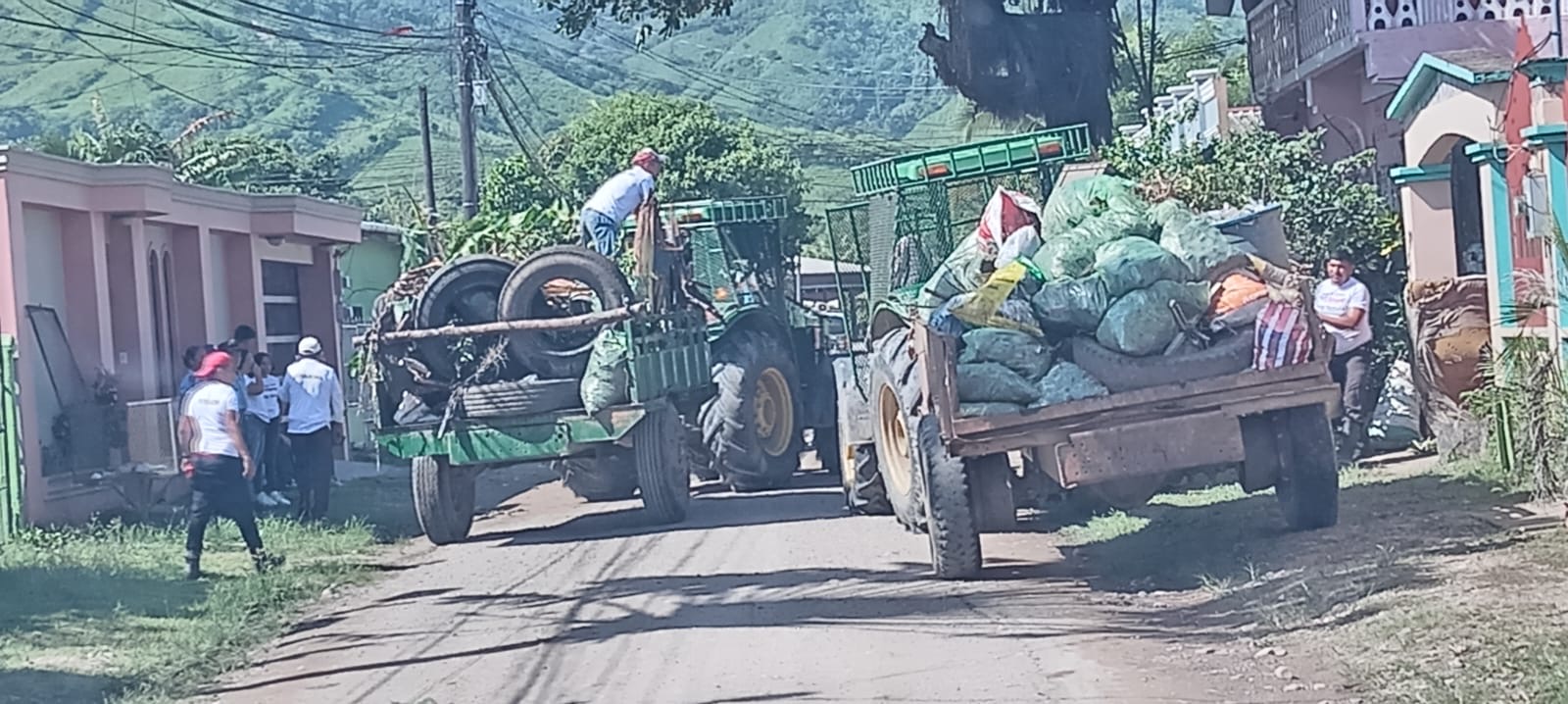 Volquetes,camiones y voluntarios de unieron al operativo de limpieza contra el dengue en este sector.