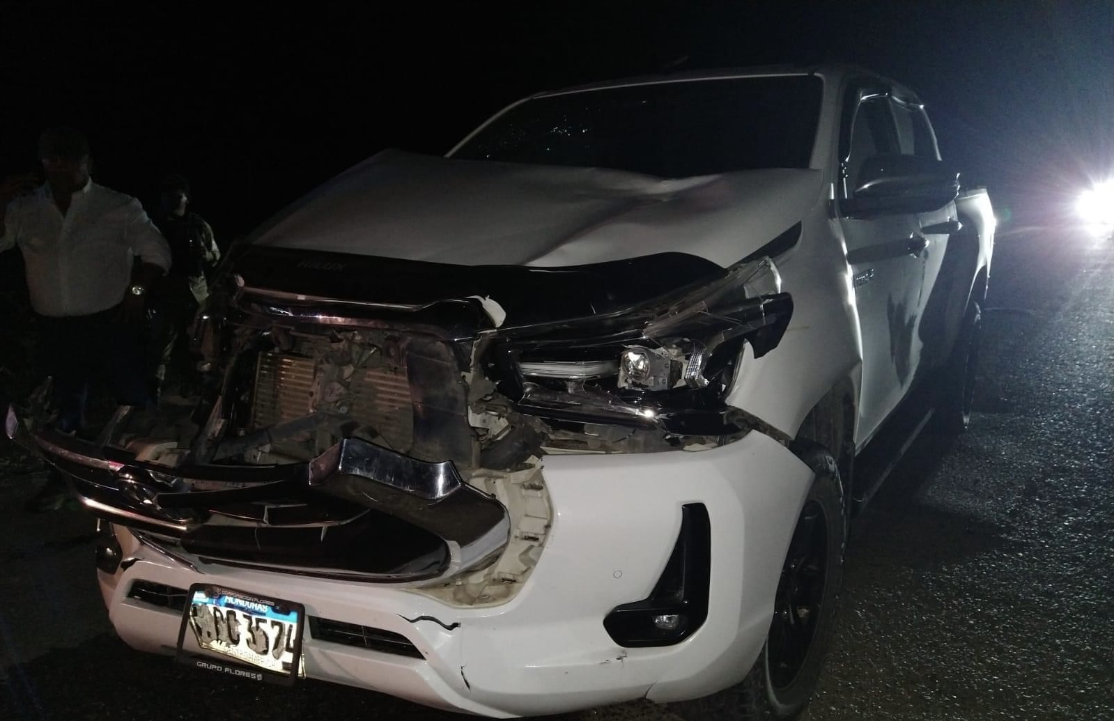 El vehículo en el que viajaba, un Toyota doble cabina de color blanco de su propiedad, sufrió daños considerables, incluido el estallido de todas las bolsas de aire.