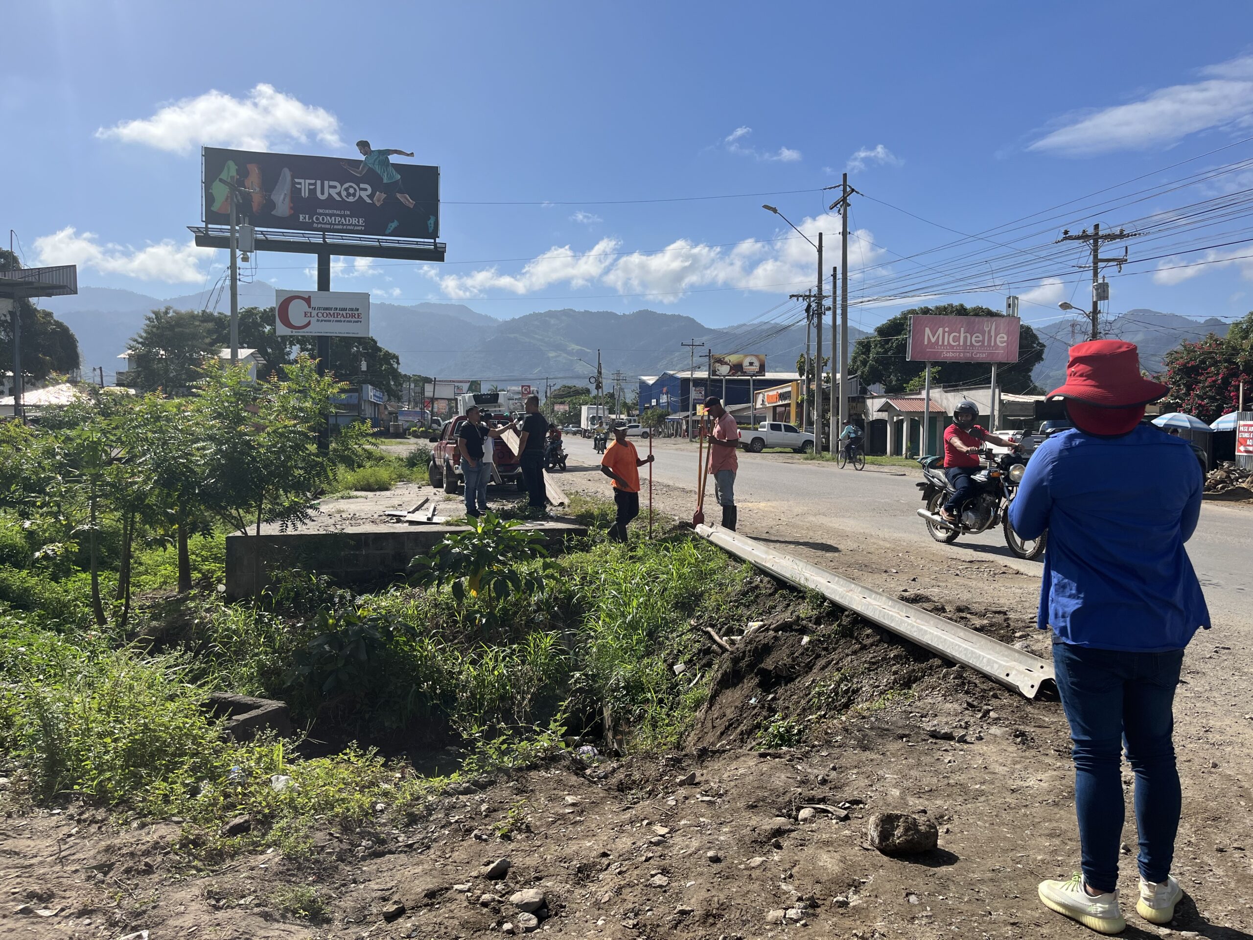 Alcaldía coloca barandales para evitar que vehículos caigan en cuneta.