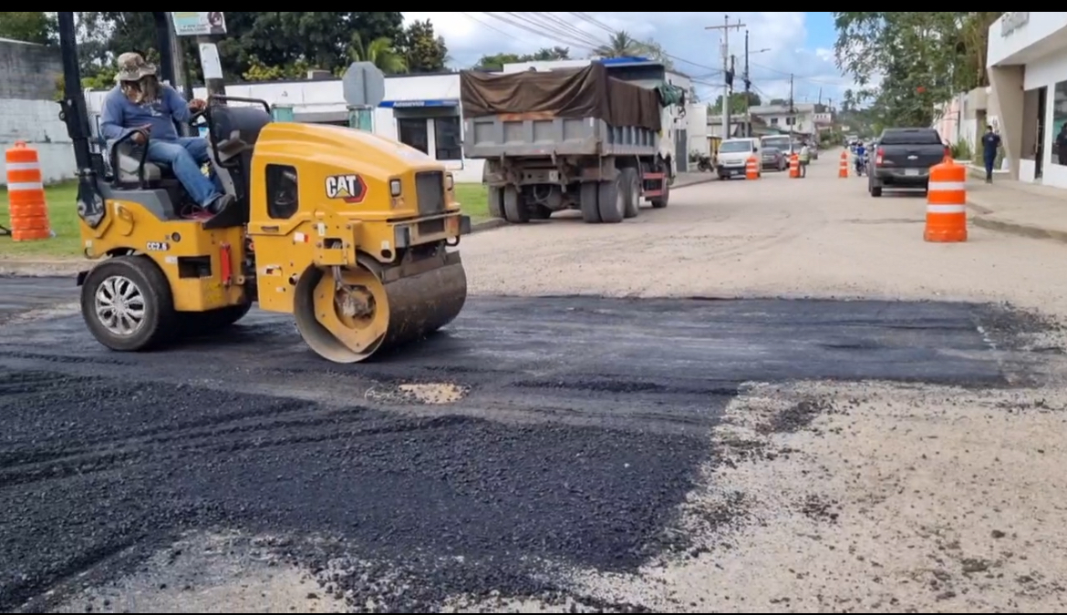 Osvaldo Sandoval encargado de la infraestructura Municipal dijo que este asfalto tiene más de treinta años , se están colocando cincuenta toneladas desde la CA13 hasta el parque central .