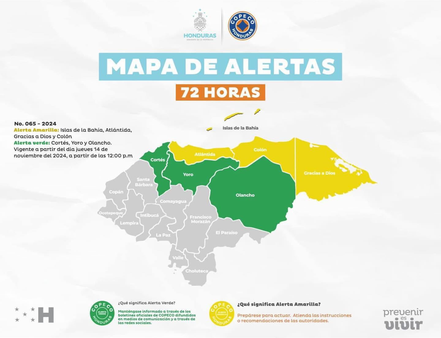 Alerta amarilla para Colón , Gracias a Dios y Atlántida e Islas de la Bahía en el nuevo boletín de Copeco .