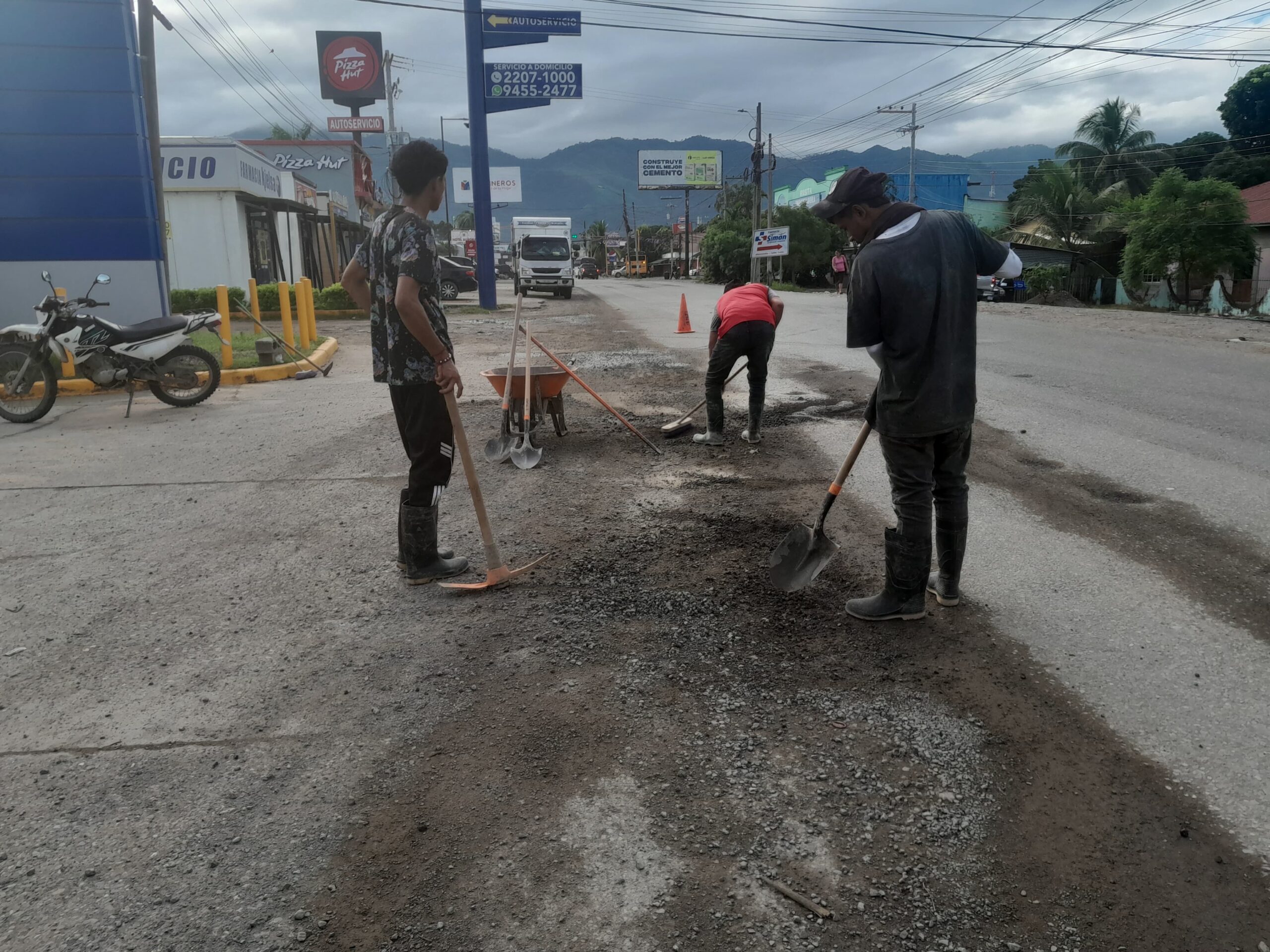 Saba,Colón – Ante el abandono en que se encuentra la carretera CA 13 por parte del Gobierno , la Alcaldía inició el bacheo con cemento en la parte que corresponde al Municipio.
