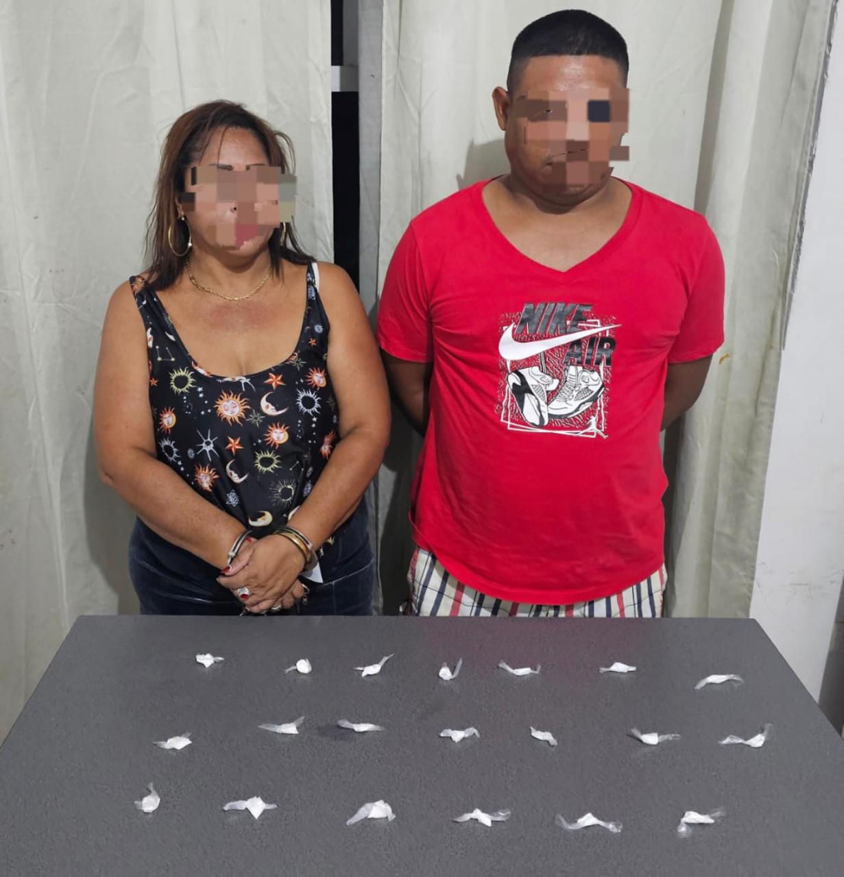 Al momento de sus arrestos, se les decomisó 20 bolsitas plásticas conteniendo en su interior supuesta cocaina. De acuerdo a las investigaciones estas personas se dedican a la venta y distribución de droga en esta localidad.