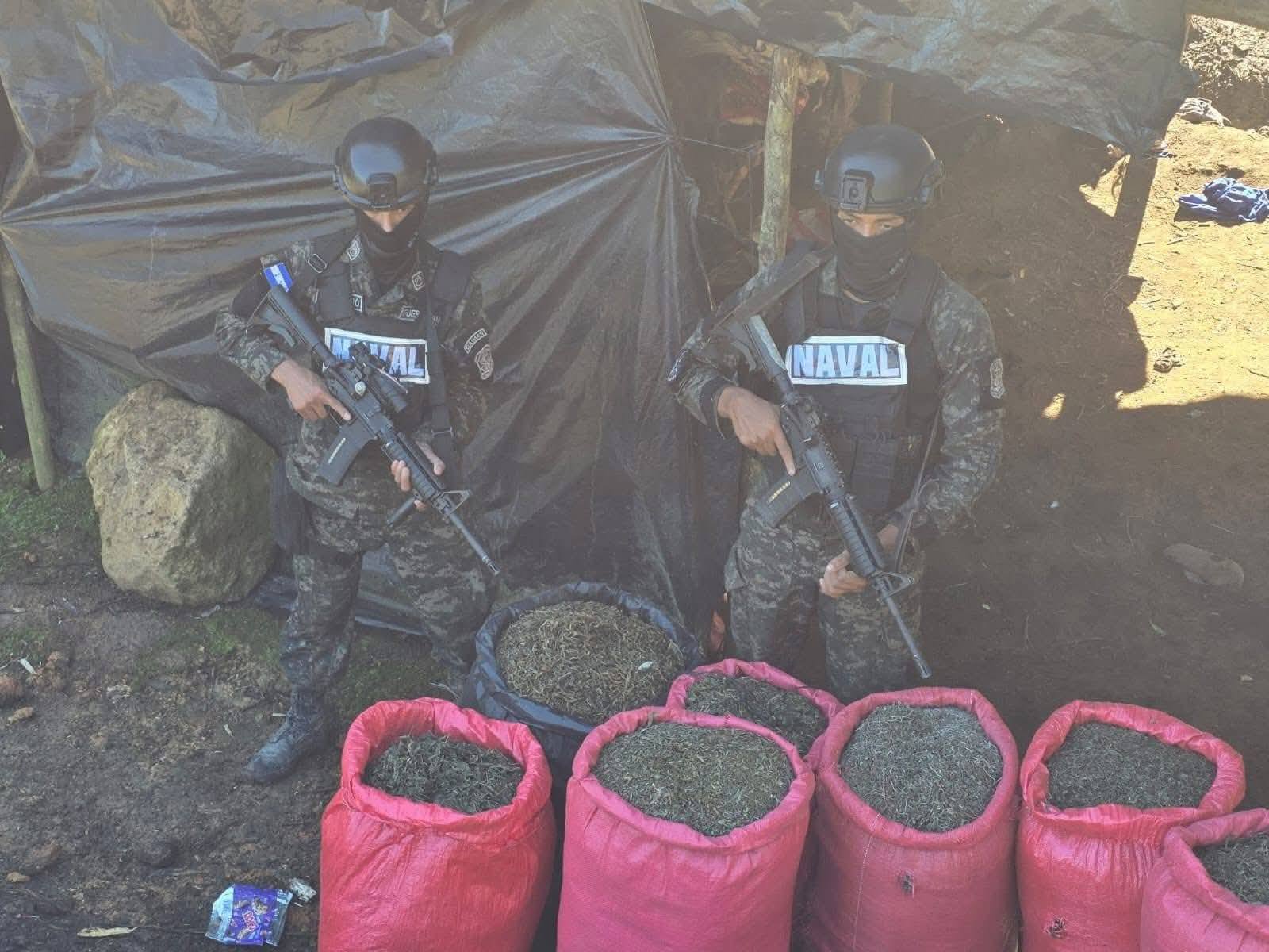 En una operación adicional, personal de la Base Naval de Puerto Castilla también aseguró una plantación de supuesta marihuana con unas 11 mil plantas, además de siete sacos que contenían cerca de 200 libras del mismo alucinógeno.