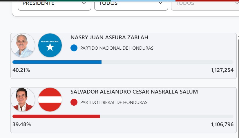 El miércoles, Nasralla había superado temporalmente a Asfura por alrededor de 20,000 votos, pero durante la madrugada del jueves, el candidato del Partido Nacional comenzó a revertir la tendencia.