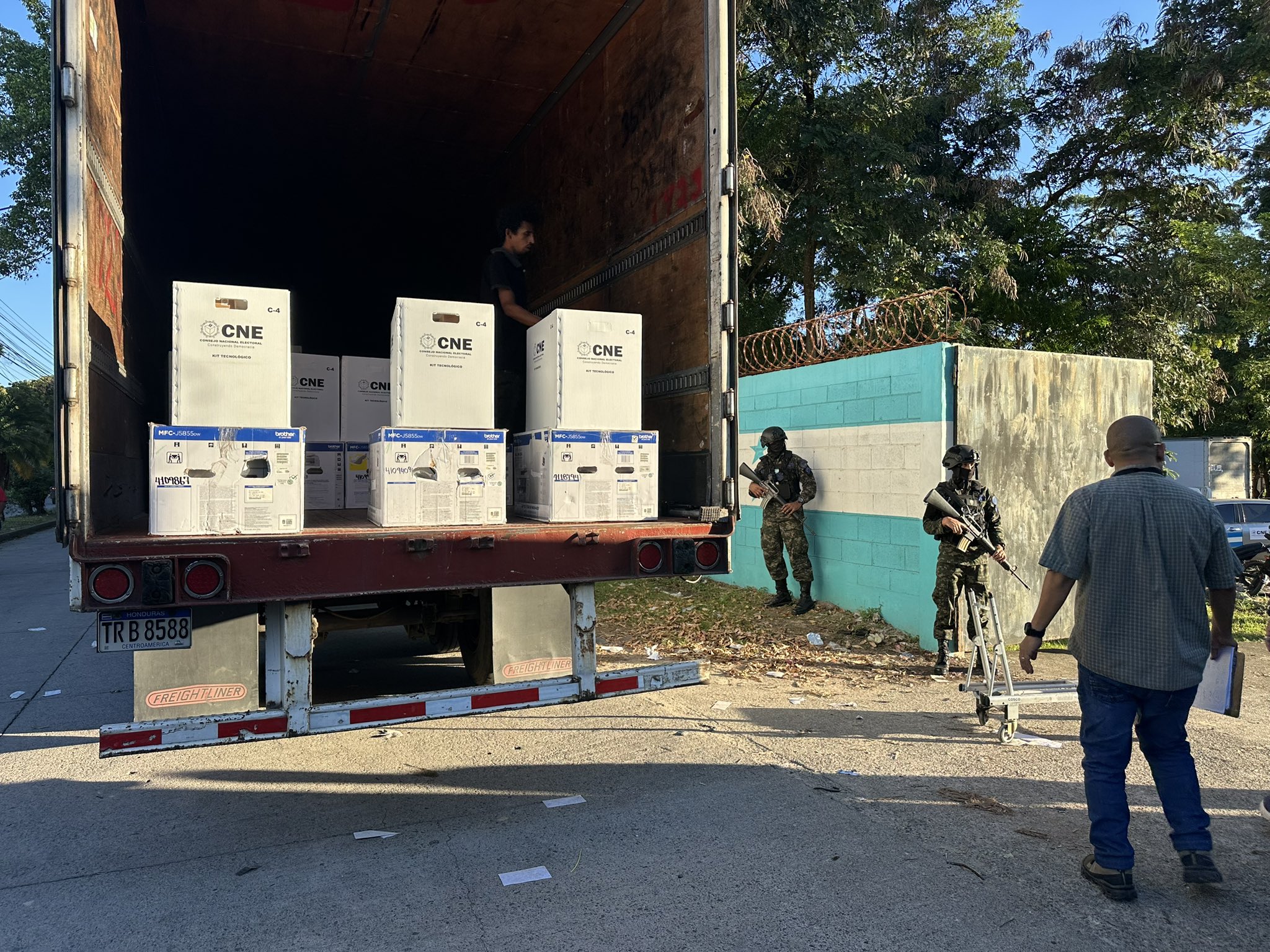 El descargue se realizó en el polideportivo del Instituto Público Manuel Bonilla, en La Ceiba, bajo estricta vigilancia militar y policial. Autoridades del Consejo Nacional Electoral (CNE) confirmaron que el material llegó en perfecto estado y completo, sin incidentes durante el traslado.