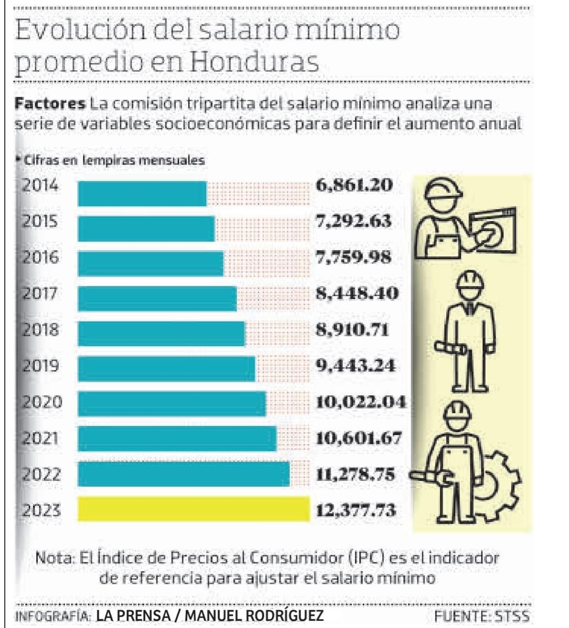 Tegucigalpa .Alza al salario sería de L642.40 al mes ,en los próximos días será convocada la negociación del salario mínimo de 2024 .