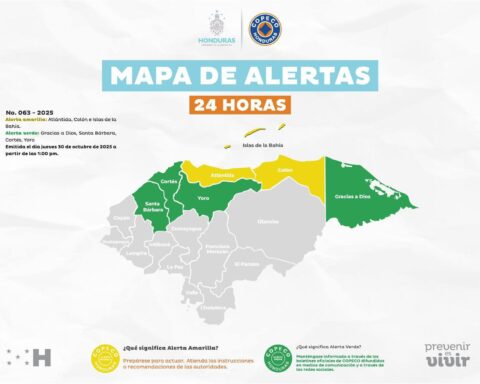 La Secretaría de Estado en los Despachos de Gestión de Riesgos y Contingencias Nacionales (COPECO) declaró este jueves Alerta Amarilla para los departamentos de Atlántida, Colón e Islas de la Bahía, debido a las fuertes lluvias que se prevén para la tarde