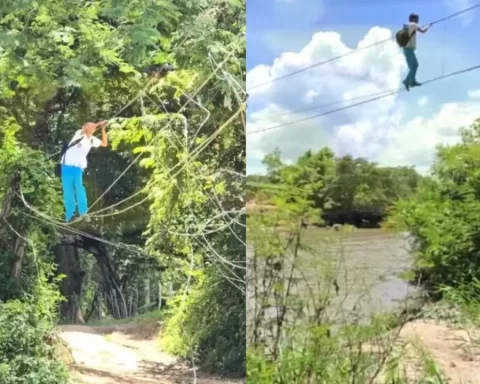 Desde hace cinco años, estudiantes y pobladores de la comunidad de El Tablón Alto, sector El Culebrero, en Catacamas, Olancho, arriesgan sus vidas a diario al cruzar un río sujetándose únicamente de los cables de lo que alguna vez fue un puente
