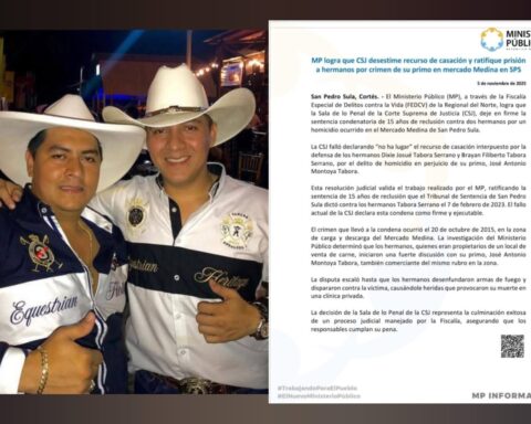San Pedro Sula – CSJ desestima casación y ratifica sentencia contra hermanos Tábora por crimen contra su primo , Así lo dio a conocer el Ministerio Público, en el que detalla que la Sala de lo Penal de la Corte Suprema de
