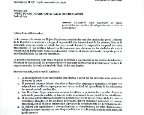 La Secretaría de Educación de Honduras informó que, como medida de mitigación ante el alza en los combustibles, se implementarán clases virtuales en los centros educativos públicos a nivel nacional. La disposición entra en vigencia a partir de mañana y se mantendrá
