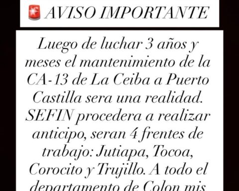 Tegucigalpa- Después de más de tres años de gestión, la reparación y el mantenimiento de la carretera CA-13, que enlaza La Ceiba con Puerto Castilla, avanza hacia su ejecución. Según el anuncio de Octavio José Pineda Paredes, la Secretaría de Finanzas (SEFIN)