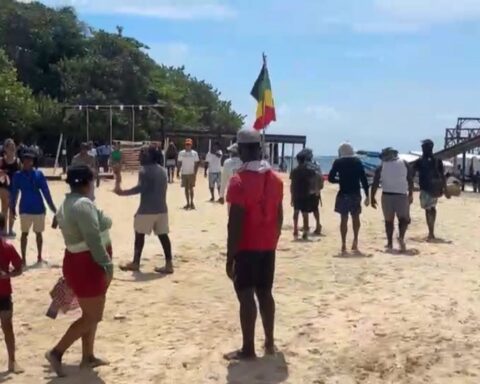 Roatán, Islas de la Bahía.- Pobladores de Nueva Armería realizan acciones de protesta en Cayos Cochinos, en la zona donde se graba el Reality Show Supervivientes, una producción de una cadena española. Las personas que protestan piden se respete el proceso de