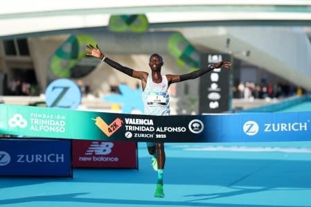 Dos kenianos, John Korir en categoría masculina y Joyciline Jepkosgei, en la femenina, se impusieron este domingo en el maratón de Valencia (este de España) en una carrera muy rápida en la que ambos atletas batieron sus marcas personales. En su primera