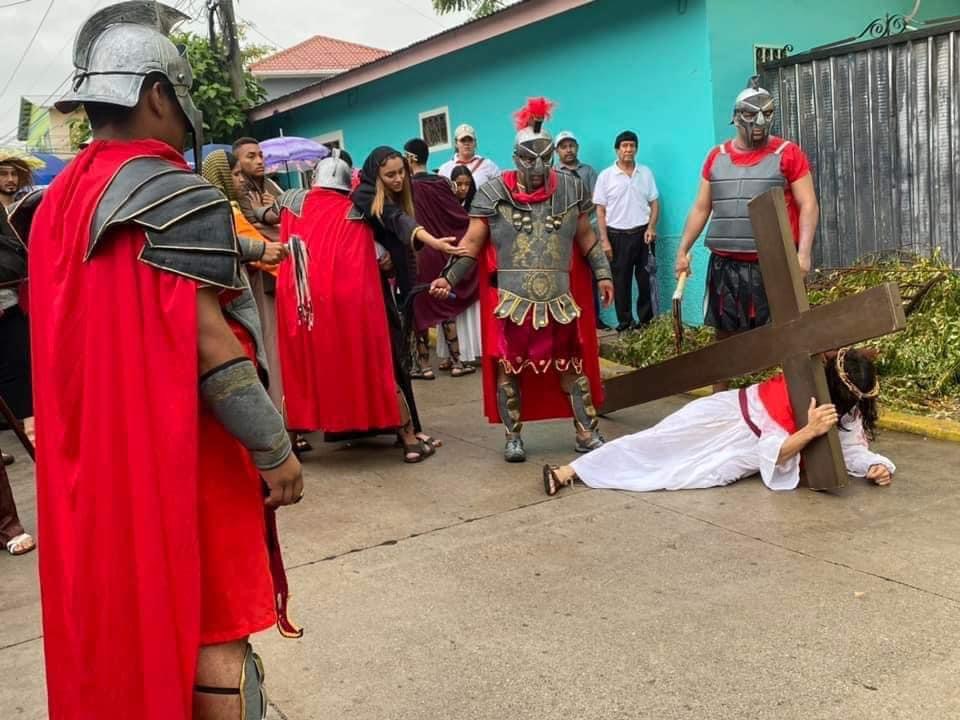 Olanchito,Yoro.- Bajo la lluvia los feligreses Católicos de esta ciudad ,vivieron con fe y devoción el viacrucis ,tradición en la Ciudad Cívica desde hace muchos años.