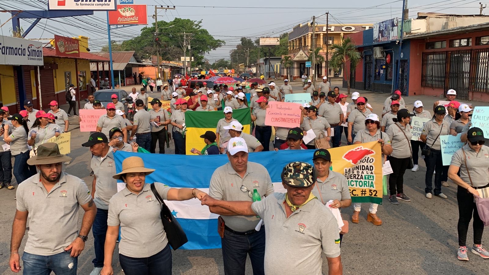 Bajo un fuerte sol trabajadores desfilan en Olanchito.
