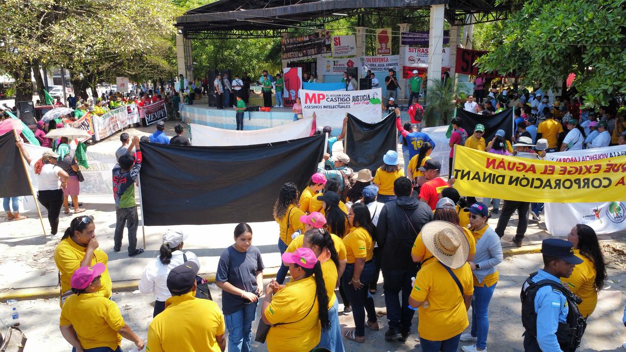 Tocoa,Colón – Bajo un fuerte sol , los trabajadores de diferentes Organizaciones caminaron por las calles principales de esta Ciudad , con pancartas exigiendo justicia para Juan López ,dirigente asesinado hace unos meses .