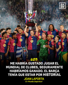 Lo más bonito sería inaugurar el Camp Nou con un homenaje a Leo Messi» «Me hubiera gustado jugar el Mundial de Clubes, seguramente lo habríamos ganado» Joan Laporta habla claro