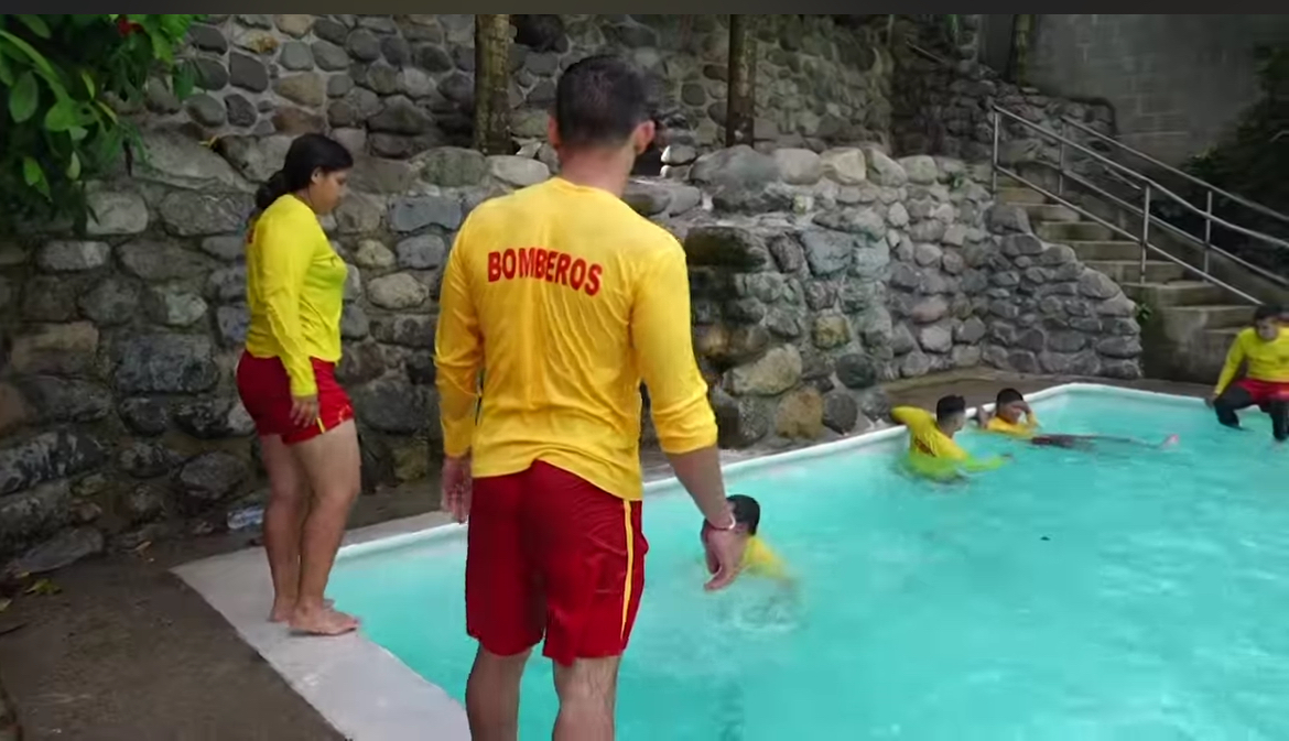 Los elementos del cuerpo de Bomberos de esta ciudad se trasladaron a las piscinas de un centro turístico de la zona para realizar prácticas de rescate acuática .
