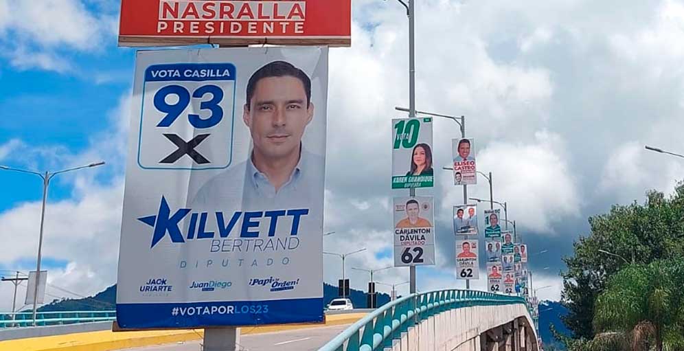 En ciudades como Tegucigalpa y San Pedro Sula, la publicidad política compite por visibilidad incluso con las grandes marcas comerciales. Afiches, mantas, rótulos, pantallas LED y vallas cubren puentes, postes, cerros, techos de viviendas y cualquier espacio disponible. A esto se suma una presencia agresiva en medios tradicionales y redes sociales, donde el discurso ha escalado con ataques cruzados entre candidatos.