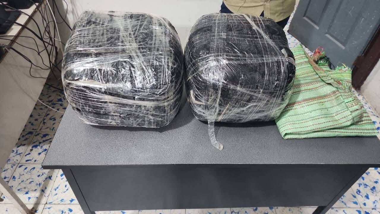 Durante la inspección, los uniformados decomisaron dos paquetes de plástico transparente que contenían aproximadamente 32 libras de hierba seca, con características propias de la marihuana.