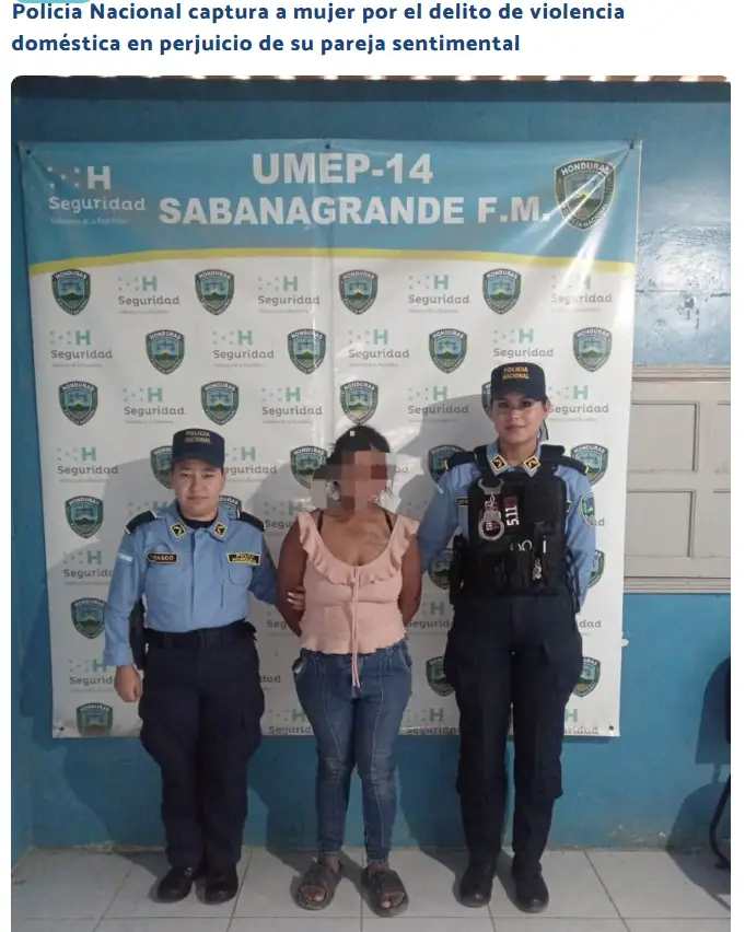 La Policía Nacional de Honduras, a través de la Unidad Metropolitana de Prevención número 14 (UMEP-14), detuvo en las últimas horas a una mujer por suponerla responsable del delito de violencia doméstica en perjuicio de su pareja sentimental.