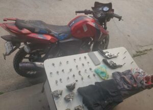Al sospechoso se le decomisó una motocicleta, dos armas de fuego, cinco proyectiles sin percutir.