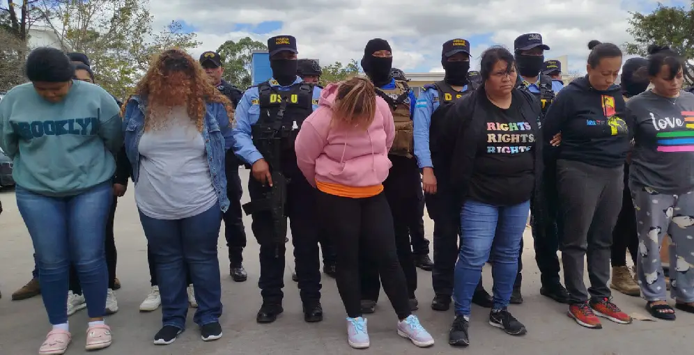 Las detenidas fueron identificadas como Génesis Velardine Osorio Bueso (34), Fabiola Marcela Flores Girón (40), Maryori Missel Zepeda Perdomo (36), Evelin Yackeline Berríos Reyes (41), Alexandra Paola Sierra Ordóñez (36), Nelly Lizeth Zepeda Sánchez (37) y Estephany Nohelia Zamora Leonardo. Según la Dipampco, las mujeres tenían un papel crucial en la logística financiera de la red, abriendo cuentas bancarias y habilitando billeteras electrónicas para mover el dinero de las extorsiones, lo que dificultaba su rastreo.