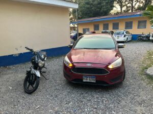 También dos teléfonos celulares, un vehículo tipo turismo, color Rojo y una motocicleta.
