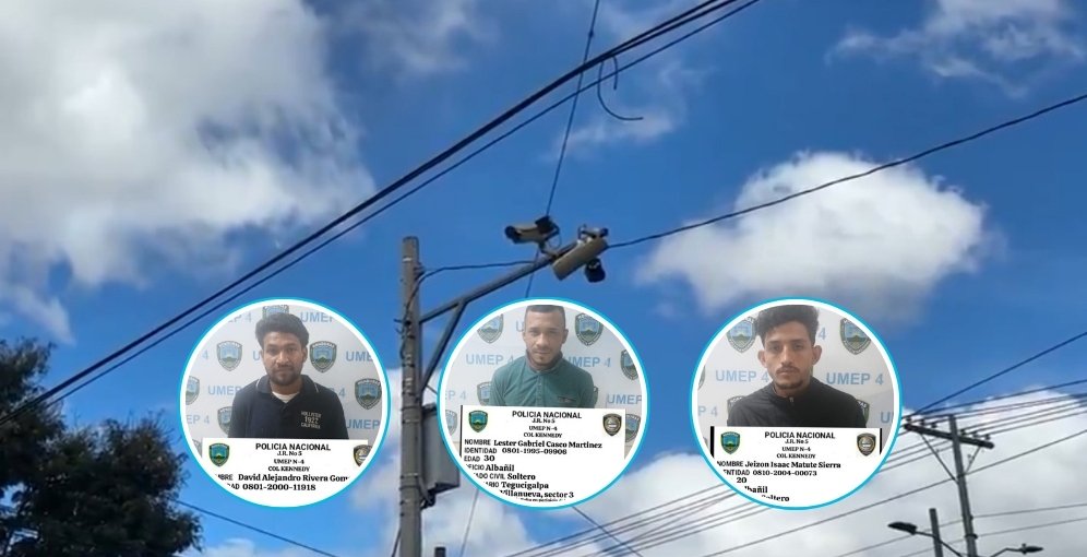 Tegucigalpa. — Tres personas fueron detenidas esta madrugada en el Anillo Periférico de la capital, luego de ser sorprendidas desmantelando cámaras del Sistema Nacional de Emergencias 911, informó la Policía Nacional.