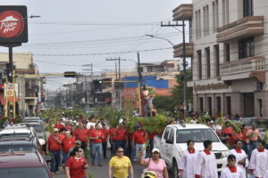 El malecón turístico municipal, fue el encuentro para la bendición de los ramos, luego en una procesión por la popular avenida San Isidro, los fieles partieron hacia la plaza municipal, donde se celebró la santa misa, propia de este Domingo de Ramos.