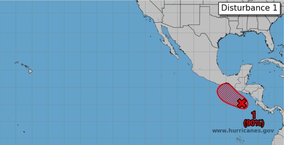 Según el pronóstico más reciente, el sistema tiene 80 % de probabilidad de convertirse en ciclón en las próximas 48 horas y 90 % en los próximos siete días, mientras se desplaza hacia el noroeste, en dirección a México.