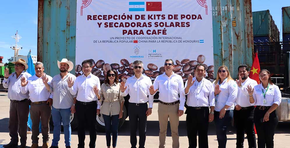 La Embajada de la República Popular China en Honduras entregó un importante lote de equipos agrícolas destinados a fortalecer el sector cafetalero nacional. El envío, recibido en el puerto de Henecán, San Lorenzo, incluye 5,000 invernaderos para el secado del café y 5,000 kits de poda, como parte de la cooperación agrícola entre ambos países.