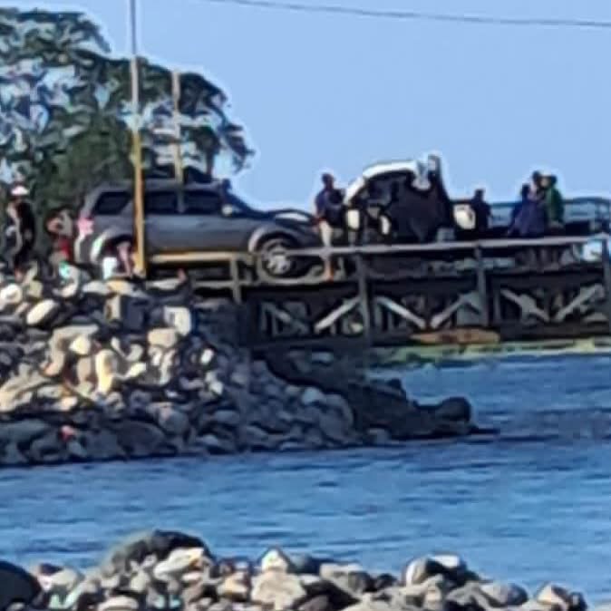 La Ceiba. Se reportó un choque entre un camioncito y una camioneta en el puente provisional que recién se inauguró en el vado en el Río Cangrejal.