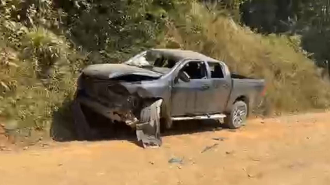 El encontronazo sucedió en el sector de Campamento, un punto con curvas, bajadas y subidas. La unidad de taxi quedó dada vuelta en el mismo carril donde un vehículo color negro, doble cabina, tipo «pick up» tambien quedo con su parte frontal destruida.