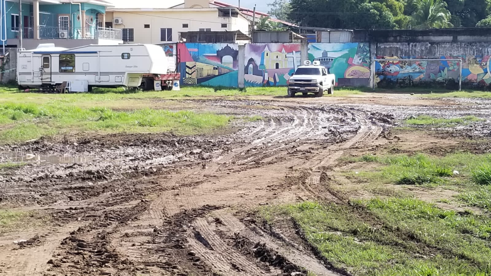 Tocoa,Colón .Después de dos meses  de la estadía de un circo en esta ciudad,sobre el campo de fútbol del barrio Abajo frente la municipalidad, entregan el campo totalmente destruido.
