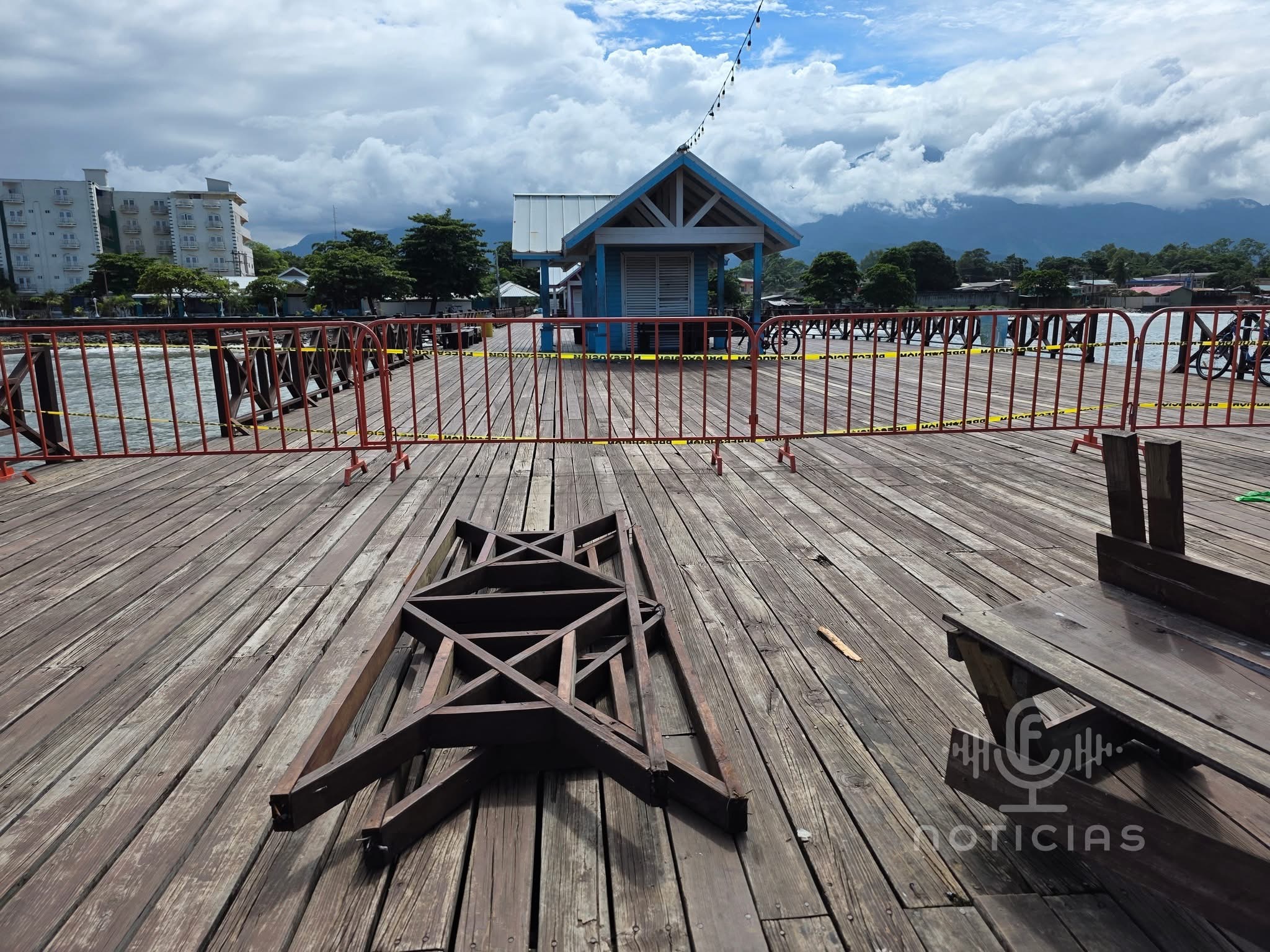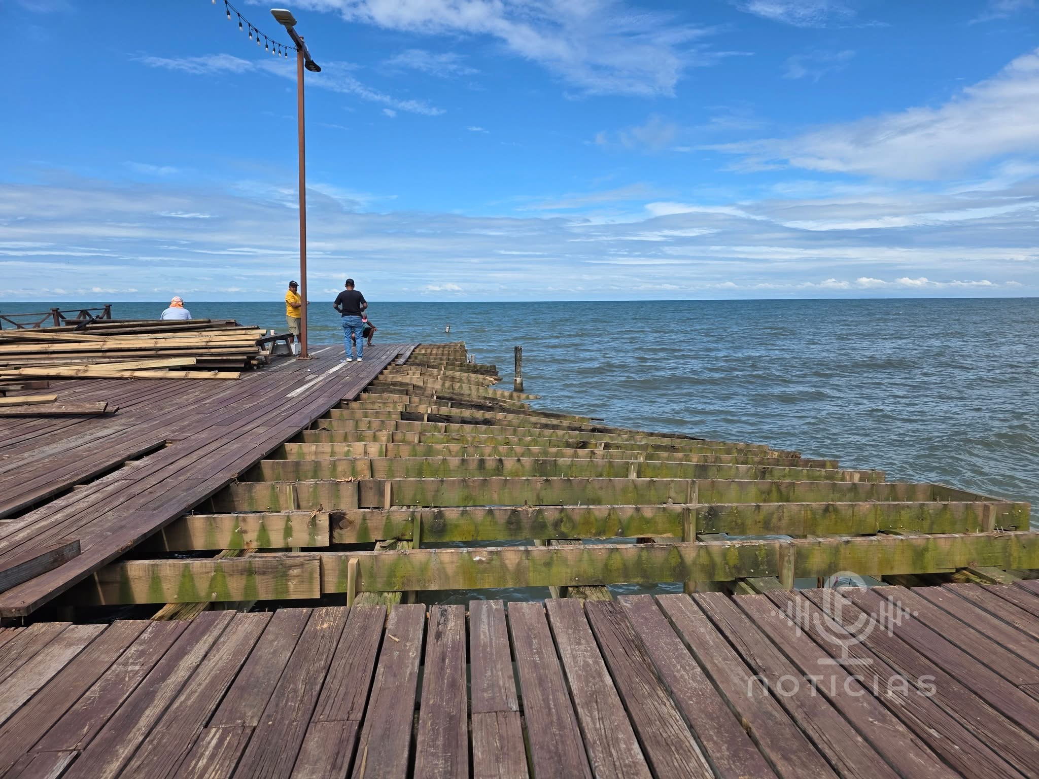 Ya se retiró una parte de la madera, se presume que en las próximas semanas iniciarán reconstrucción de parte de este muelle.