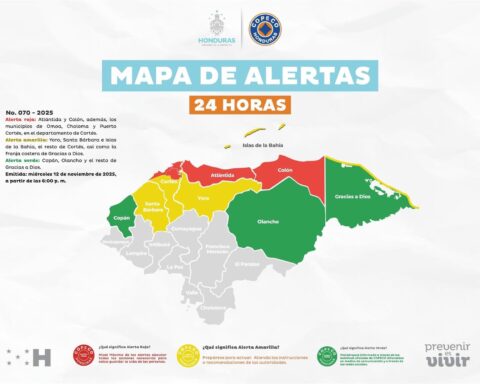 Tegucigalpa-La Secretaría de Gestión de Riesgos y Contingencias Nacionales (Copeco), amplió por 24 horas más las alertas vigentes por lluvias asociadas a una masa de aire frío. La institución mantiene la Alerta Roja para los departamentos de Atlántida y Colón, así como