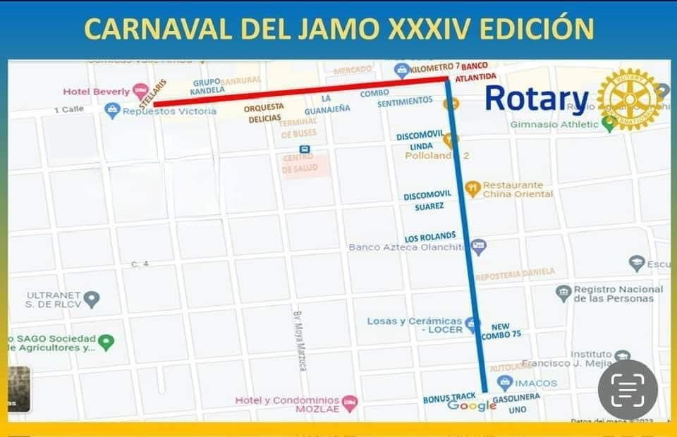 Club Rotario presenta recorrido que harán las carrozas y los grupos musicales que se presentarán.