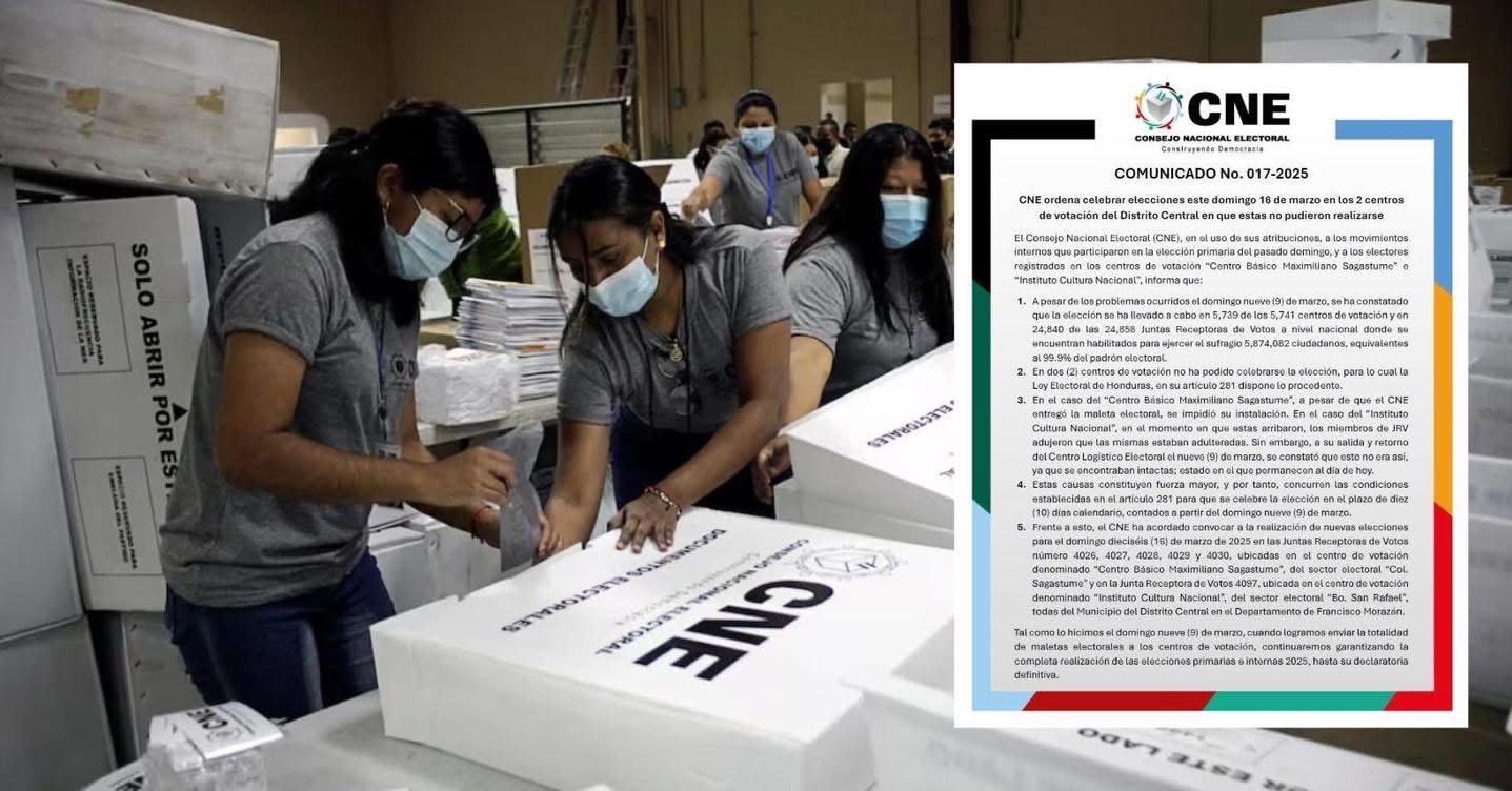 Tegucigalpa- CNE ordena celebrar elecciones este domingo 16 de marzo en los 2 centros de votación del Distrito Central en que estas no pudieron realizarse.