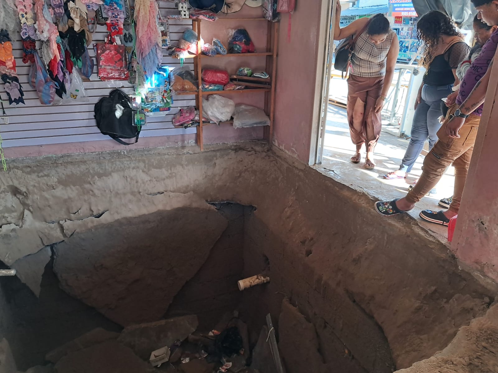 Tocoa, Colón. — El piso de un local comercial ubicado en el mercado municipal, justo en la entrada a la terminal de buses, cedió de manera repentina la mañana de este martes, provocando momentos de alarma entre comerciantes y usuarios del transporte público. Como resultado del incidente, una persona resultó con heridas leves.